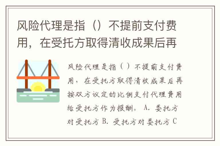 “风险代理是指()不提前支付费用,在受托方取得清收成果后再按双方议定的比例支付代理费用给受托方作为报酬。”