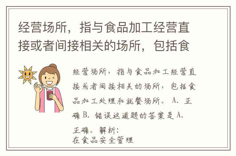 经营场所,指与食品加工经营直接或者间接相关的场所,包括食品加工处理和就餐场所。 A. 正确 B. 错误
