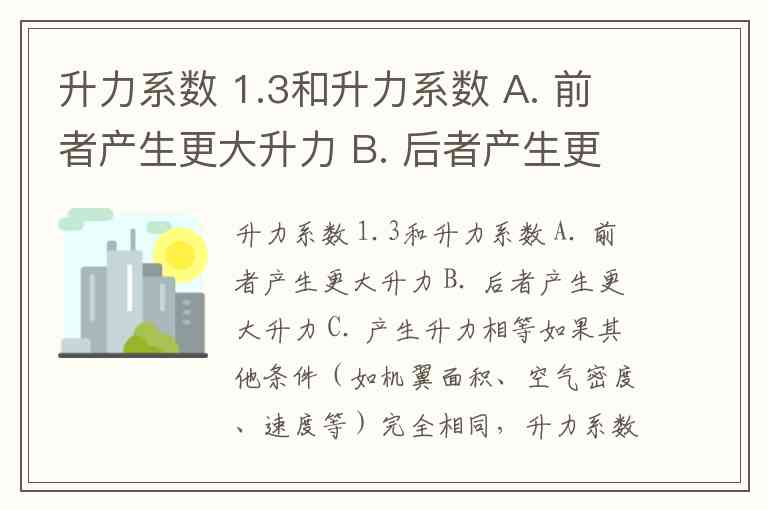 升力系数 1.3和升力系数 A. 前者产生更大升力 B. 后者产生更大升力 C. 产生升力相等