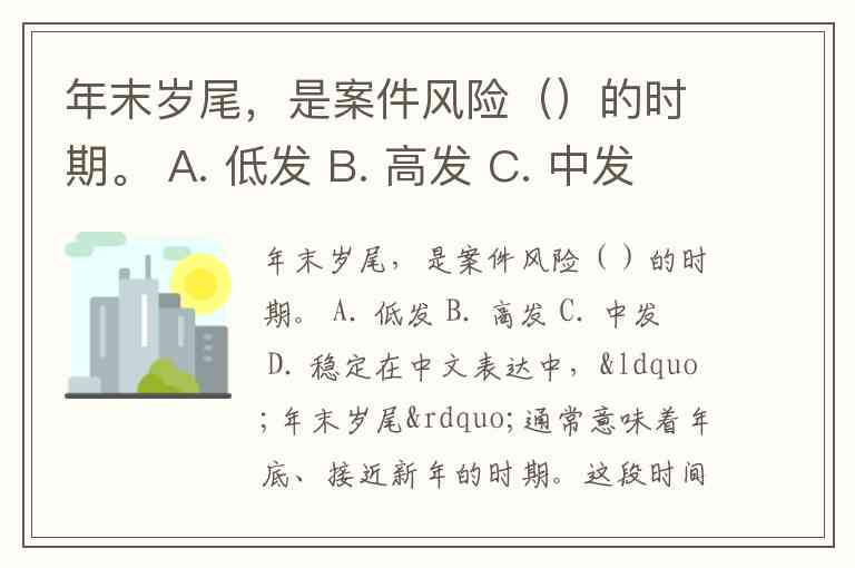 年末岁尾,是案件风险()的时期。 A. 低发 B. 高发 C. 中发 D. 稳定