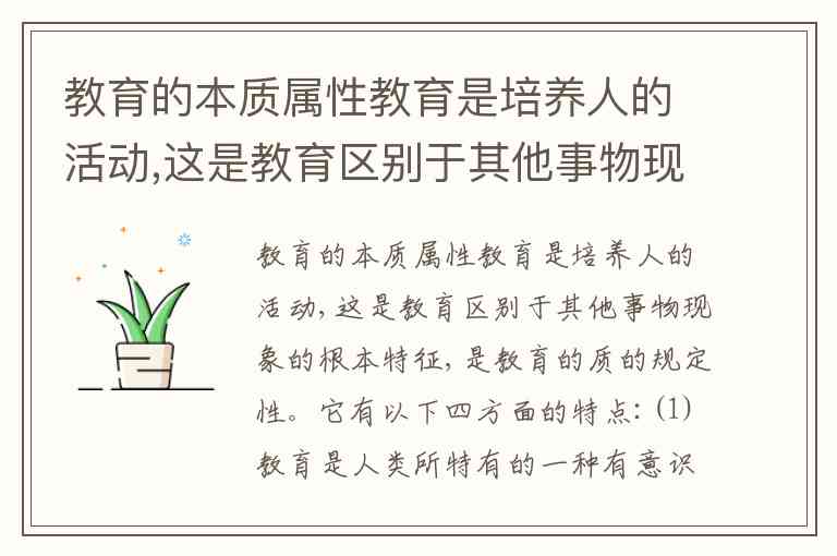 我们先来看题干给出的关于教育的本质属性的定义: