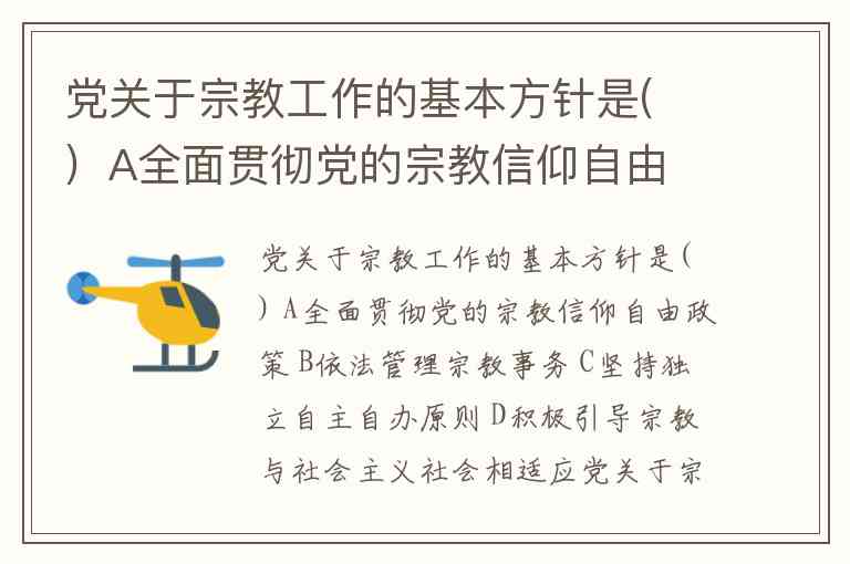 党关于宗教工作的基本方针是( ) A全面贯彻党的宗教信仰自由政策 B依法管理宗教事务 C坚持独立自主自办原则 D积极引导宗教与社会主义社会相适应