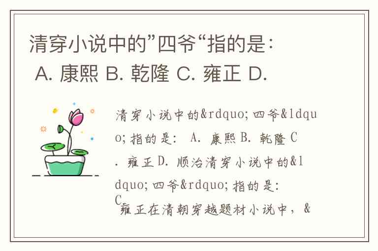 清穿小说中的”四爷“指的是: A. 康熙 B. 乾隆 C. 雍正 D. 顺治