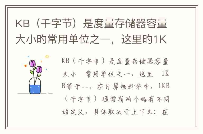 在计算机科学中,1KB(千字节) 通常有两个略有不同的定义,具体取决于上下文: