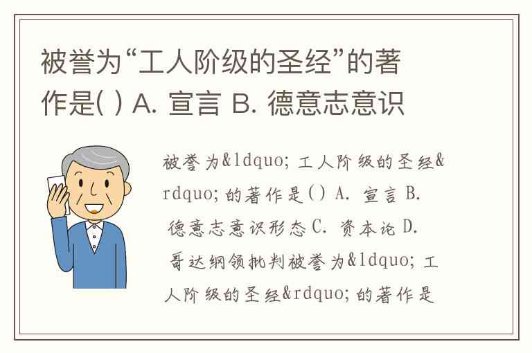 被誉为“工人阶级的圣经”的著作是 C. 资本论。