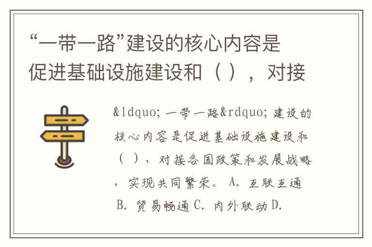 “一带一路”建设的核心内容是促进基础设施建设和( ),对接各国政策和发展战略,实现共同繁荣。 A. 互联互通 B. 贸易畅通 C. 内外联动 D. 发展模式