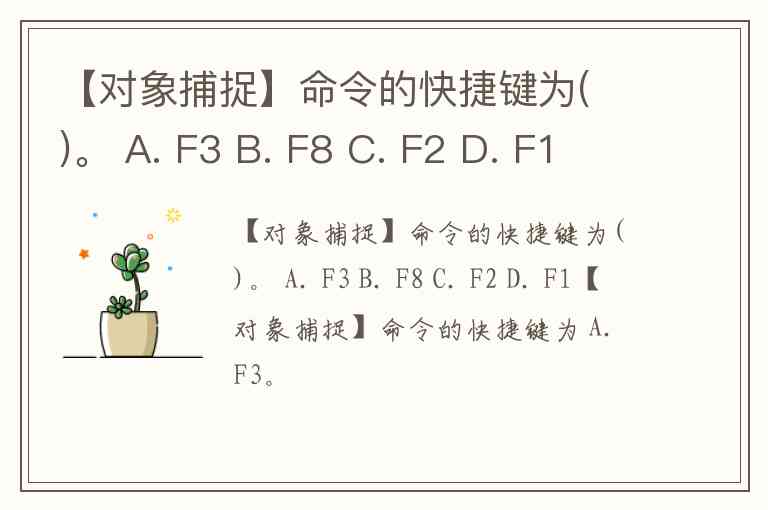 【对象捕捉】命令的快捷键为( )。 A. F3 B. F8 C. F2 D. F1