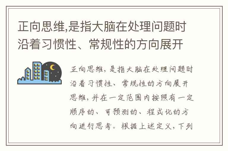 正向思维是沿着习惯性、常规性方向思考,按顺序、可预测、程式化的方法解决问题。