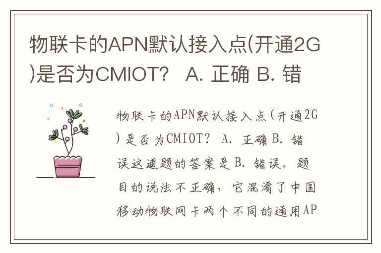 题目的说法不正确,它混淆了中国移动物联网卡两个不同的通用APN接入点。CMIOT主要用于4G网络,而开通2G网络对应的默认接入点应该是 CMMTM。