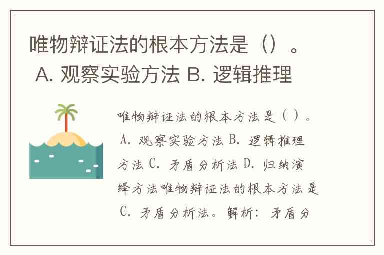 唯物辩证法的根本方法是()。 A. 观察实验方法 B. 逻辑推理方法 C. 矛盾分析法 D. 归纳演绎方法