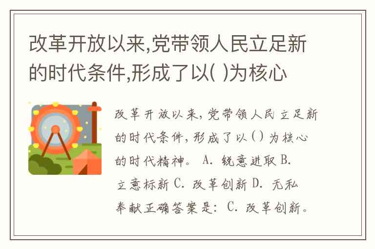 改革开放以来,党带领人民立足新的时代条件,形成了以( )为核心的时代精神。 A. 锐意进取 B. 立意标新 C. 改革创新 D. 无私奉献