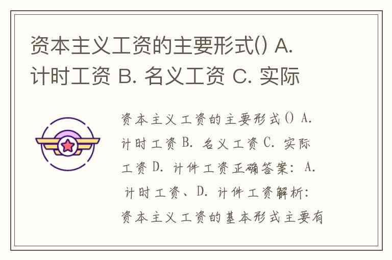 资本主义工资的主要形式() A. 计时工资 B. 名义工资 C. 实际工资 D. 计件工资