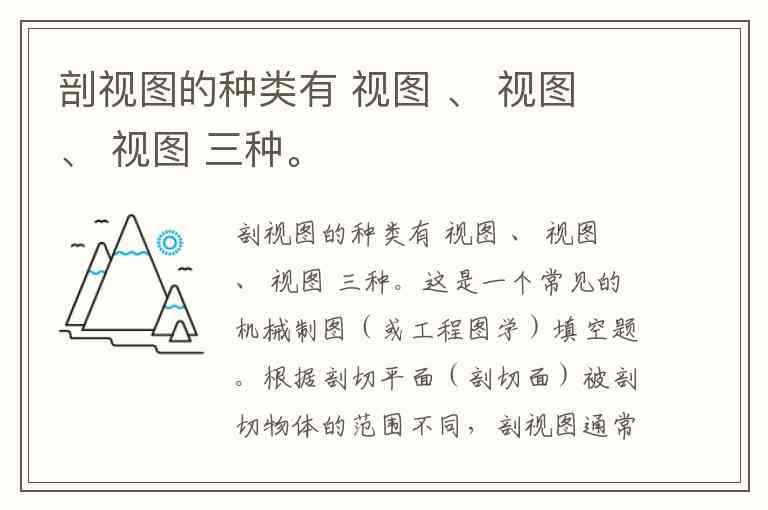 剖视的种类有 全剖 视、 半剖 视、 局部剖 视 三种。