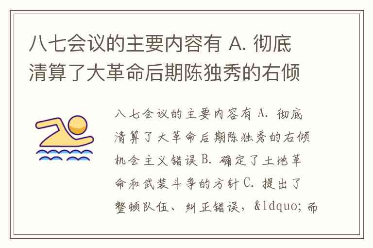 八七会议的主要内容有 A. 彻底清算了大革命后期陈独秀的右倾机会主义错误 B. 确定了土地革命和武装斗争的方针 C. 提出了整顿队伍、纠正错误,“而找着新的道路”的任务 D. 选出了以为首的中央临时政治局