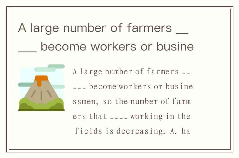 A large number of farmers _____ become workers or businessmen, so the number of farmers that ____ working in the fields is decreasing.
