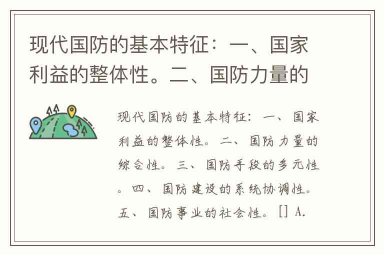 在《国防教育学》、《军事理论》等教材中,现代国防(相对于传统国防)的核心特征通常被归纳为以下几点: