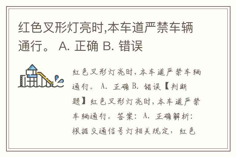 红色叉形灯亮时,本车道严禁车辆通行。 A. 正确 B. 错误