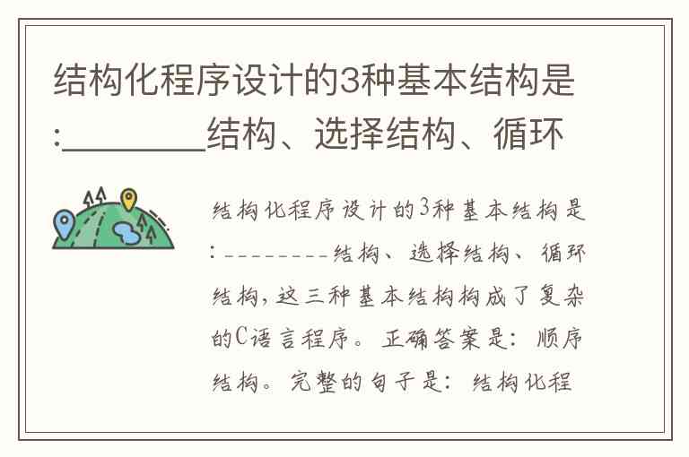 结构化程序设计的3种基本结构是:顺序结构、选择结构、循环结构,这三种基本结构构成了复杂的C语言程序。