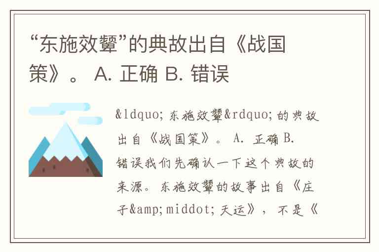 “东施效颦”的典故出自《战国策》。 A. 正确 B. 错误
