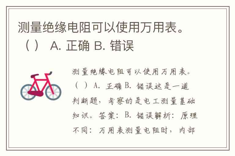 测量绝缘电阻可以使用万用表。( ) A. 正确 B. 错误