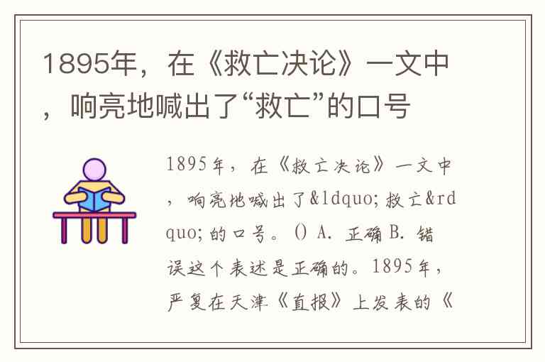 1895年,在《救亡决论》一文中,响亮地喊出了“救亡”的口号。() A. 正确 B. 错误