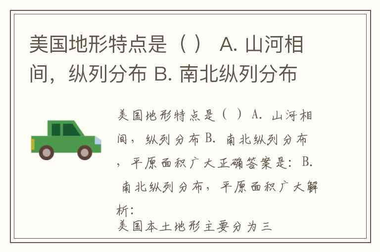 美国地形特点是( ) A. 山河相间,纵列分布 B. 南北纵列分布,平原面积广大