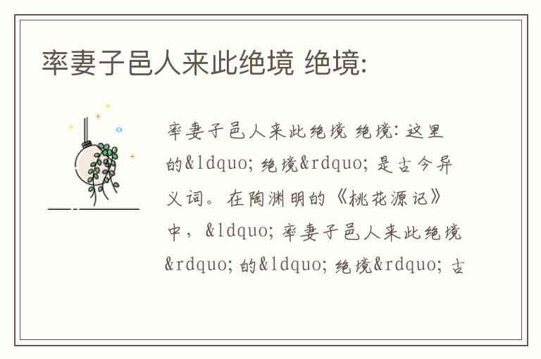 在陶渊明的《桃花源记》中,“率妻子邑人来此绝境”的“绝境”古义指的是与外界隔绝的地方或风景绝美、与世隔绝的地方。