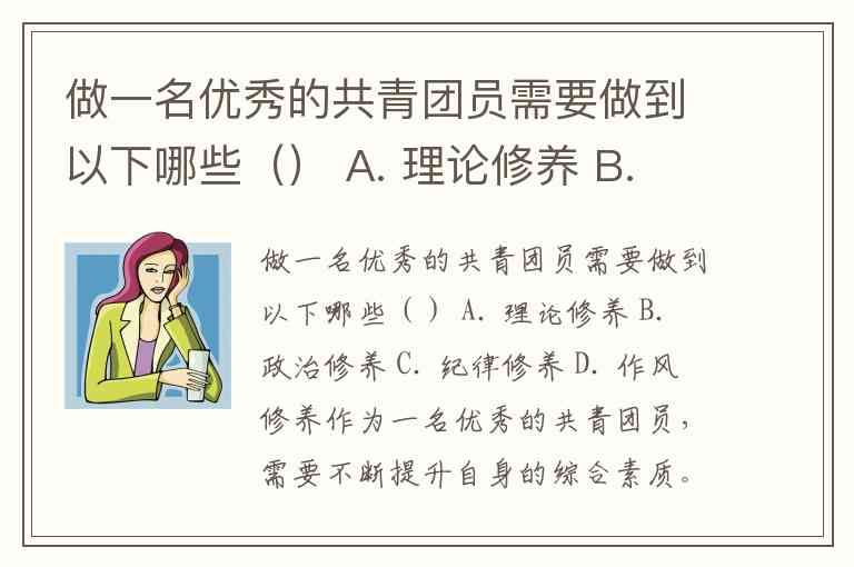 做一名优秀的共青团员需要做到以下哪些() A. 理论修养 B. 政治修养 C. 纪律修养 D. 作风修养