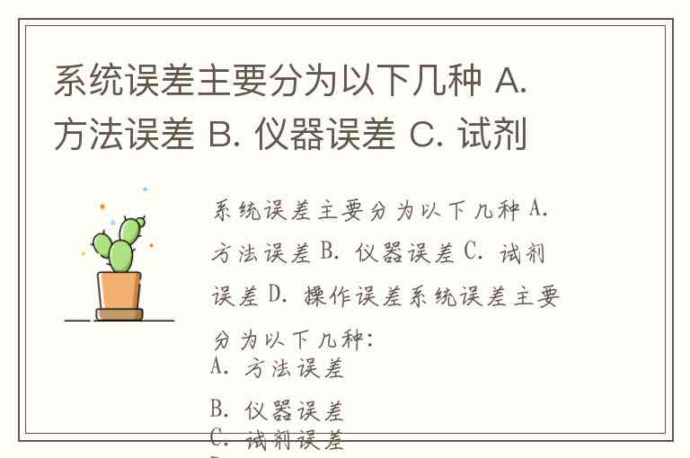 系统误差主要分为以下几种:A. 方法误差B. 仪器误差C. 试剂误差D. 操作误差