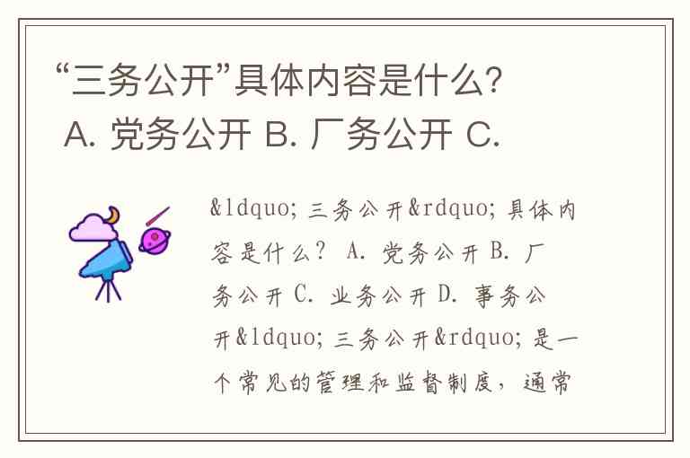 “三务公开”是一个常见的管理和监督制度,通常根据不同的领域(农村基层、企业、行政机关)有不同的指代。