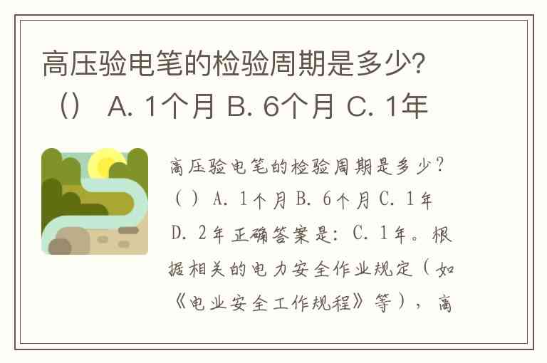高压验电笔的检验周期是多少?() A. 1个月 B. 6个月 C. 1年 D. 2年