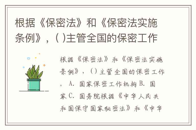 根据《保密法》和《保密法实施条例》,( )主管全国的保密工作。 A. 国家保密工作机构 B. 国家 C. 国务院