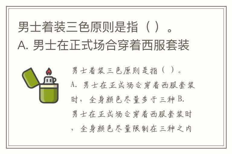 正确答案是:B. 男士在正式场合穿着西服套装时,全身颜色尽量限制在三种之内