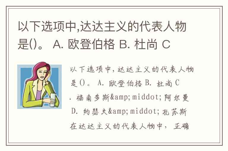 以下选项中,达达主义的代表人物是()。 A. 欧登伯格 B. 杜尚 C. 福南多斯·阿尔曼 D. 约瑟夫·孔苏斯