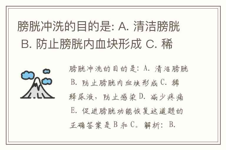 A. 清洁膀胱 ❌ 清洁膀胱通常是冲洗的手段,而不是最终的治疗目的。医学上更强调治疗性目的(如防止堵塞、防止感染)。