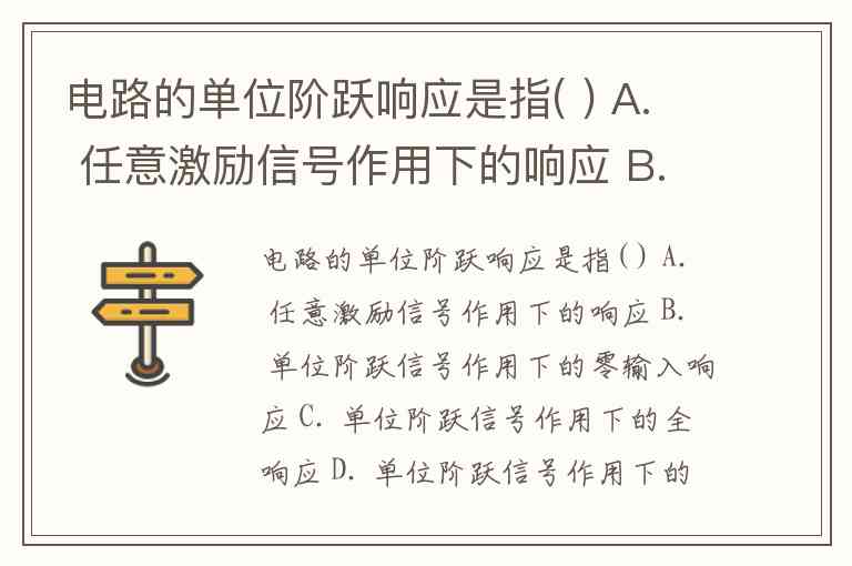 电路的单位阶跃响应是指( ) A. 任意激励信号作用下的响应 B. 单位阶跃信号作用下的零输入响应 C. 单位阶跃信号作用下的全响应 D. 单位阶跃信号作用下的零状态响应