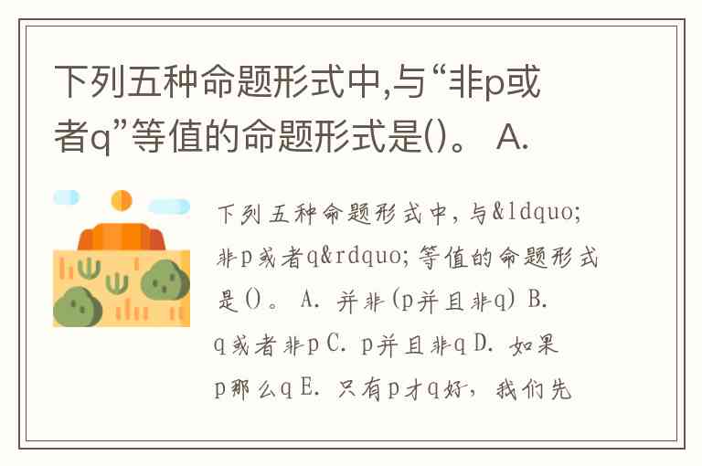 但题中说“下列五种命题形式中,与‘非p或者q’等值的命题形式是”——是单选还是多选?