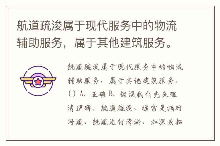 但如果题目说“航道疏浚属于现代服务中的物流辅助服务,属于其他建筑服务”,则前后矛盾——因为在税收分类中,“物流辅助服务”和“建筑服务”是两个并列的大类(现代服务包括物流辅助服务,物流辅助服务不叫建筑服务)。