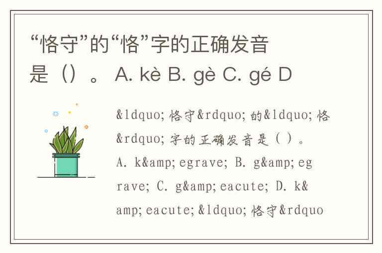 “恪守”的“恪”字的正确发音是()。 A. kè B. gè C. gé D. ké