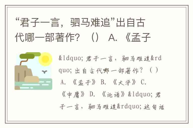 “君子一言,驷马难追”出自古代哪一部著作?() A. 《孟子》 B. 《大学》 C. 《中庸》 D. 《论语》
