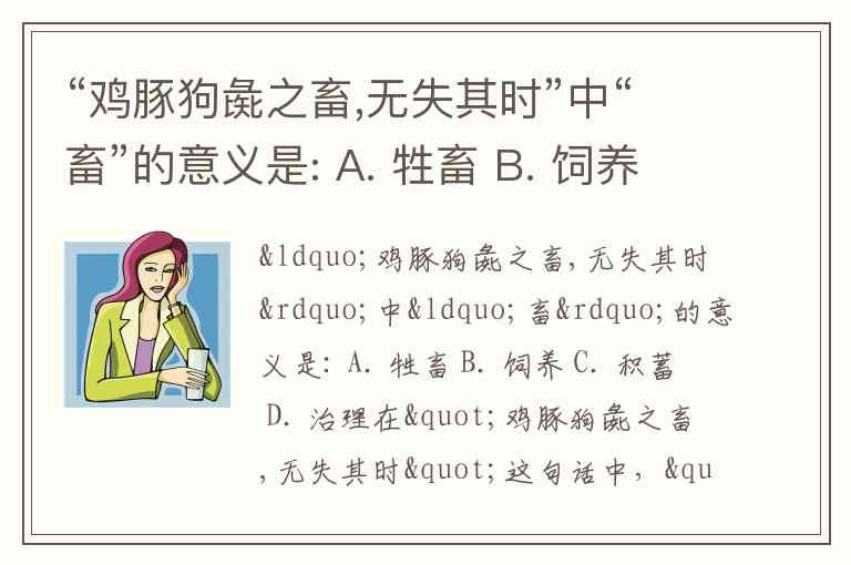 “鸡豚狗彘之畜,无失其时”中“畜”的意义是: A. 牲畜 B. 饲养 C. 积蓄 D. 治理