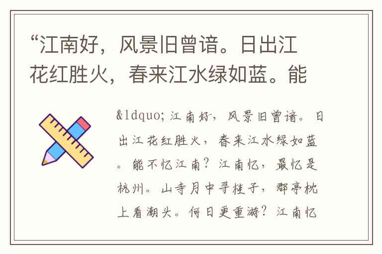 这首词是唐代诗人白居易的《忆江南》三首,题目中给出的正是第一首“江南好”以及第二、三首的部分内容。