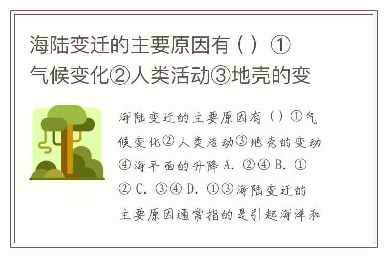 ③ 地壳的变动:地壳运动(如板块运动、地壳抬升或沉降)是导致海陆变迁的根本原因之一。