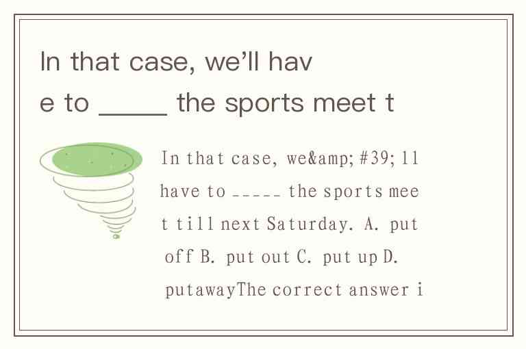 In that case, we'll have to _____ the sports meet till next Saturday. A. put off B. put out C. put up D. putaway