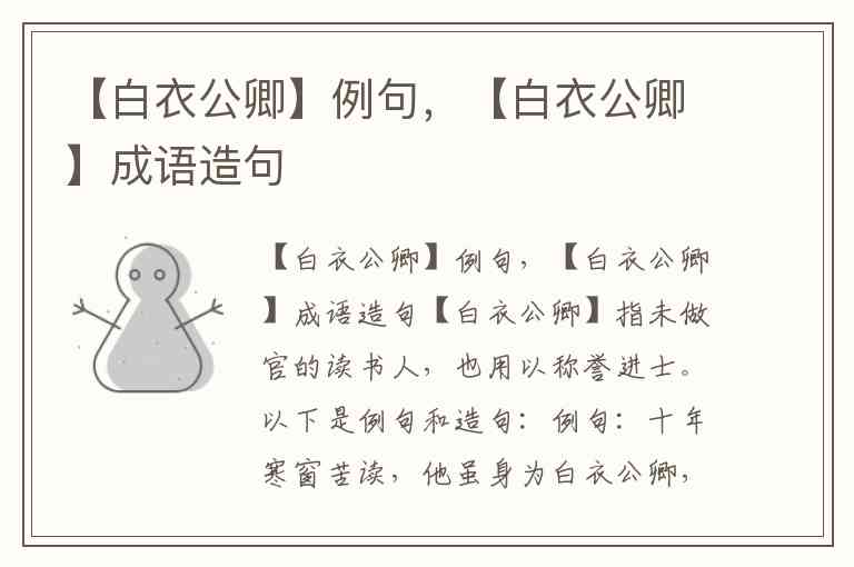 【白衣公卿】指未做官的读书人,也用以称誉进士。以下是例句和造句: