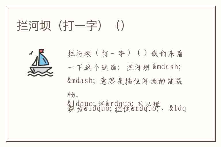 在字谜中,“拦河”可能暗示把水拦住,不让水流过去。
