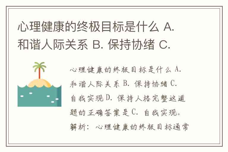 心理健康的终极目标是什么 A. 和谐人际关系 B. 保持协绪 C. 自我实现 D. 保持人格完整