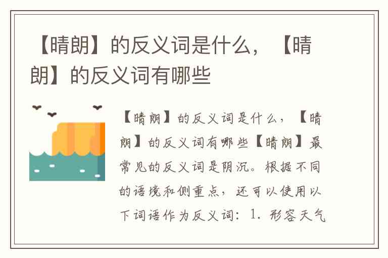 【晴朗】的反义词是什么,【晴朗】的反义词有哪些