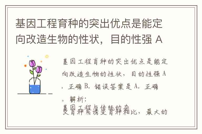 基因工程可以直接将特定的外源基因导入生物体内,使其获得或改变某种性状,因此目的性强,能够精准地实现育种目标。
