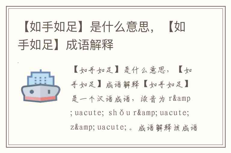 【如手如足】是一个汉语成语,读音为 rú shǒu rú zú。